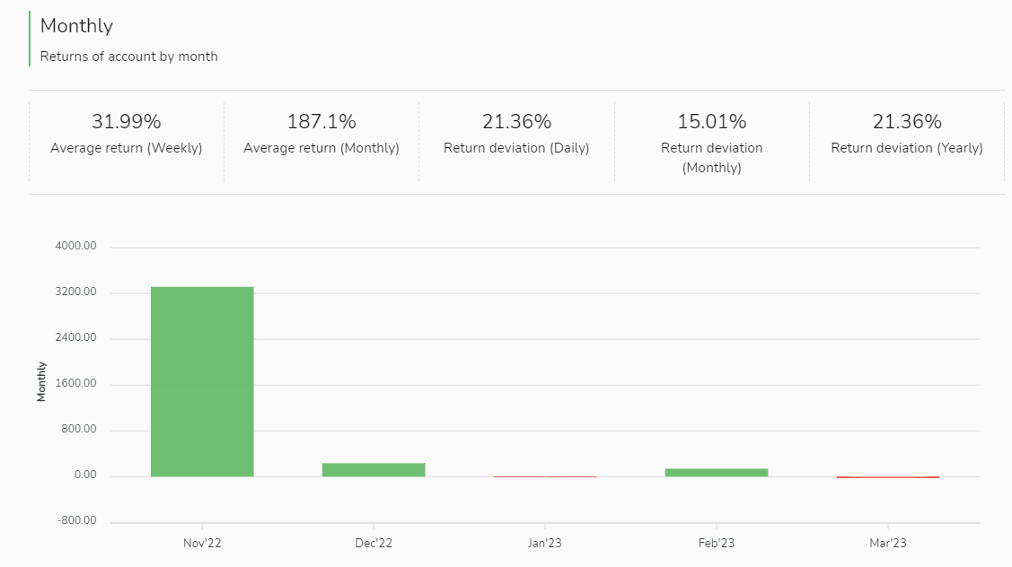 In terms of monthly performance, “Xiaoniu No. 0001” (小牛0001号) trading signal provider achieved most of its gains in November last year, with an impressive monthly return of 3,315.36%.