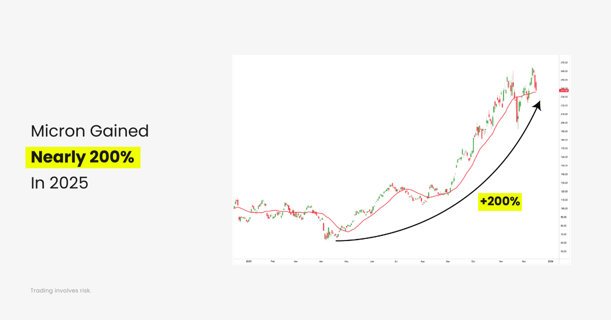 Micron (MU) gained around 200% from its 2025 lows, marking one of the stronger stock performances of the year.