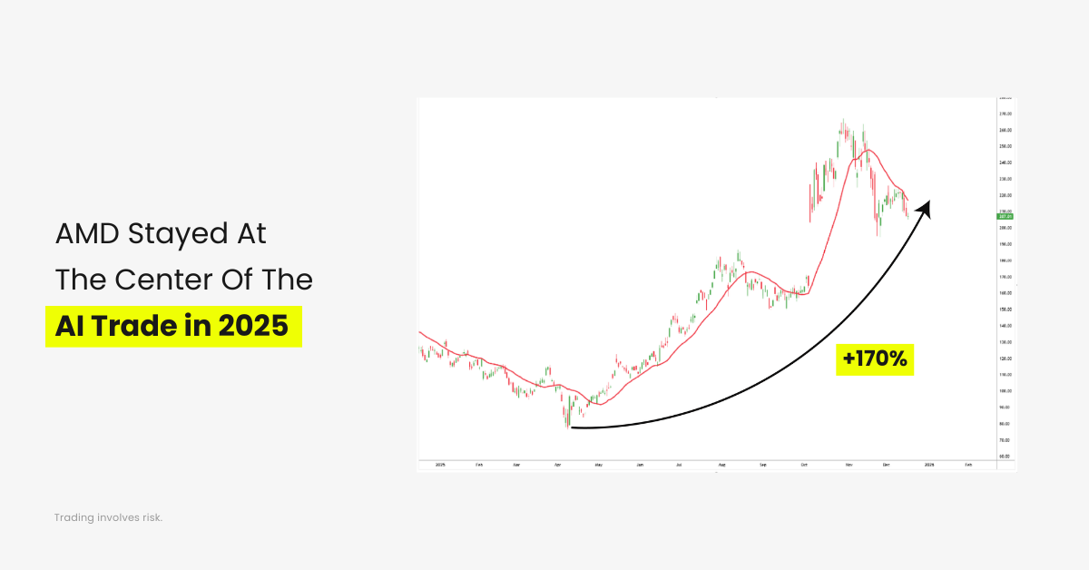 AMD benefited from its positioning across data centers, AI acceleration, and high-performance computing. While competition in the chip space remained intense, AMD managed to stay relevant within the AI narrative and avoided the sharp sentiment swings seen in more speculative names.