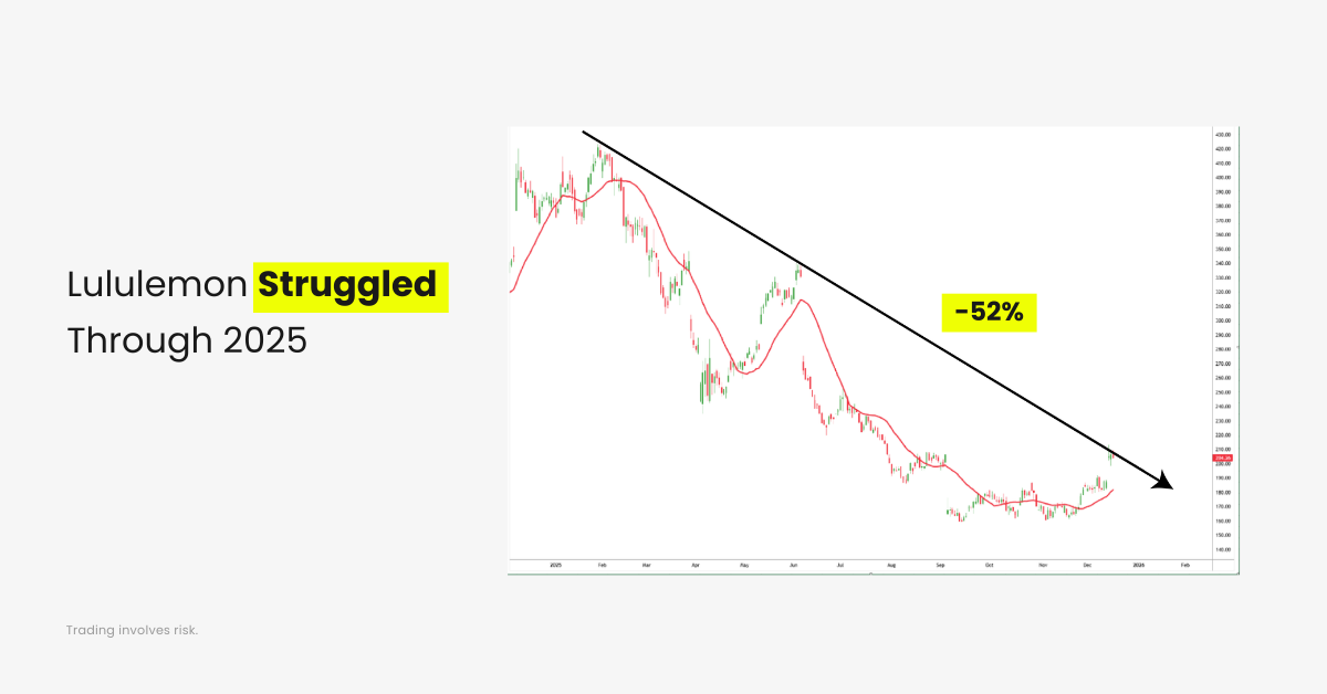 Lululemon faced pressure from slowing consumer demand and rising competition within the premium apparel space. Margins came under scrutiny as discretionary spending softened, leading to underperformance relative to broader consumer benchmarks.