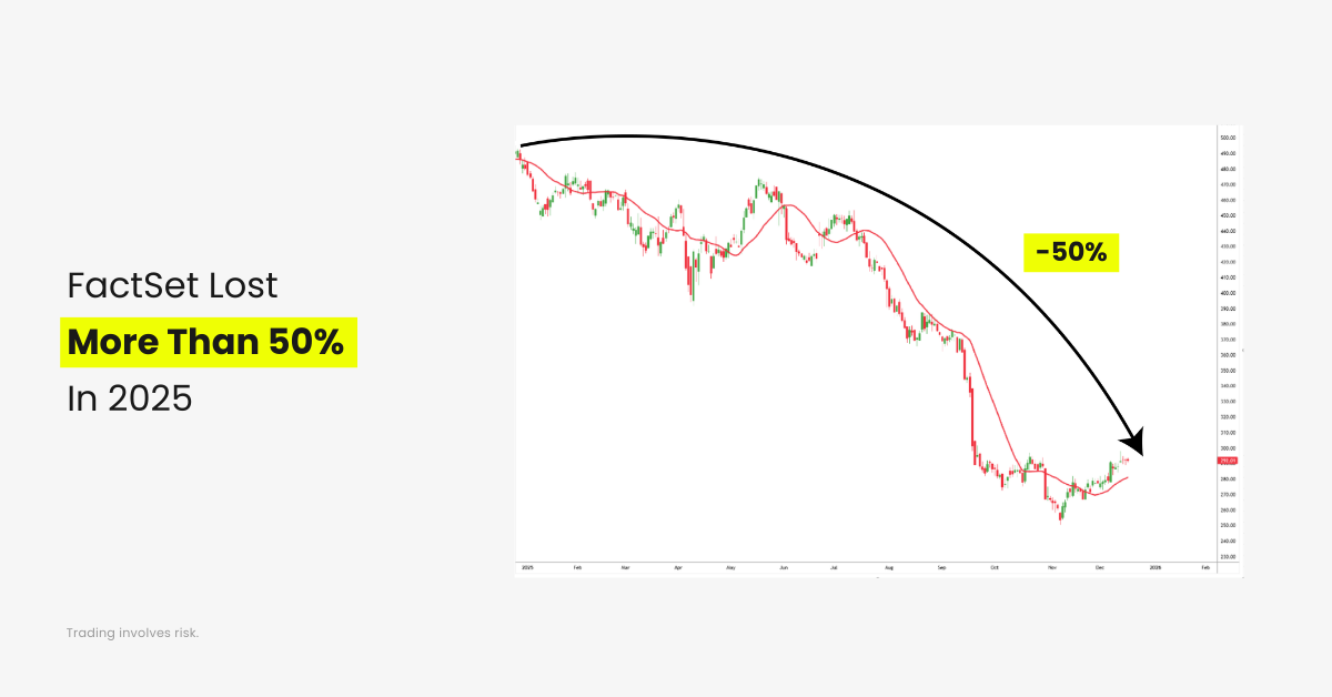 FactSet struggled as investors reassessed the long-term outlook for traditional financial data and analytics providers. The rise of AI-driven tools and changing client demand raised questions about growth sustainability, pushing the stock lower over the course of the year.