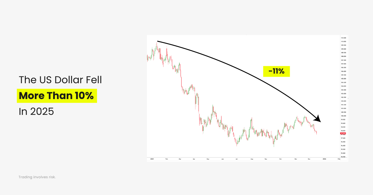 Even before cuts materialize, the direction of policy often matters more than the timing. In 2025, that directional shift worked against the dollar.