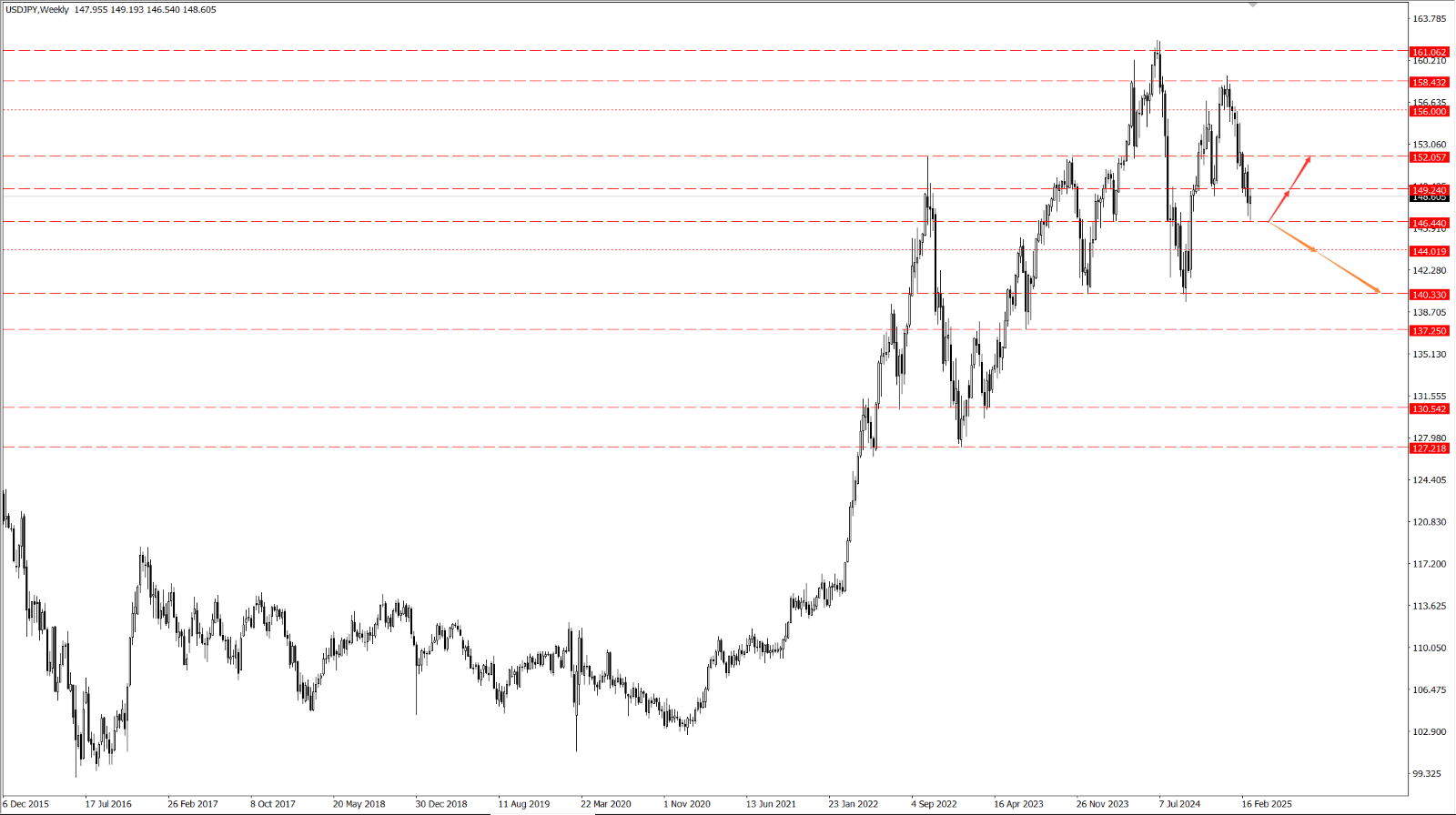 달러/엔이 146.44선 위에서 안정적으로 유지될 경우 추가 반등 가능성을 평가하며 149.24와 152.05선에서의 저항을 확인해야 합니다.