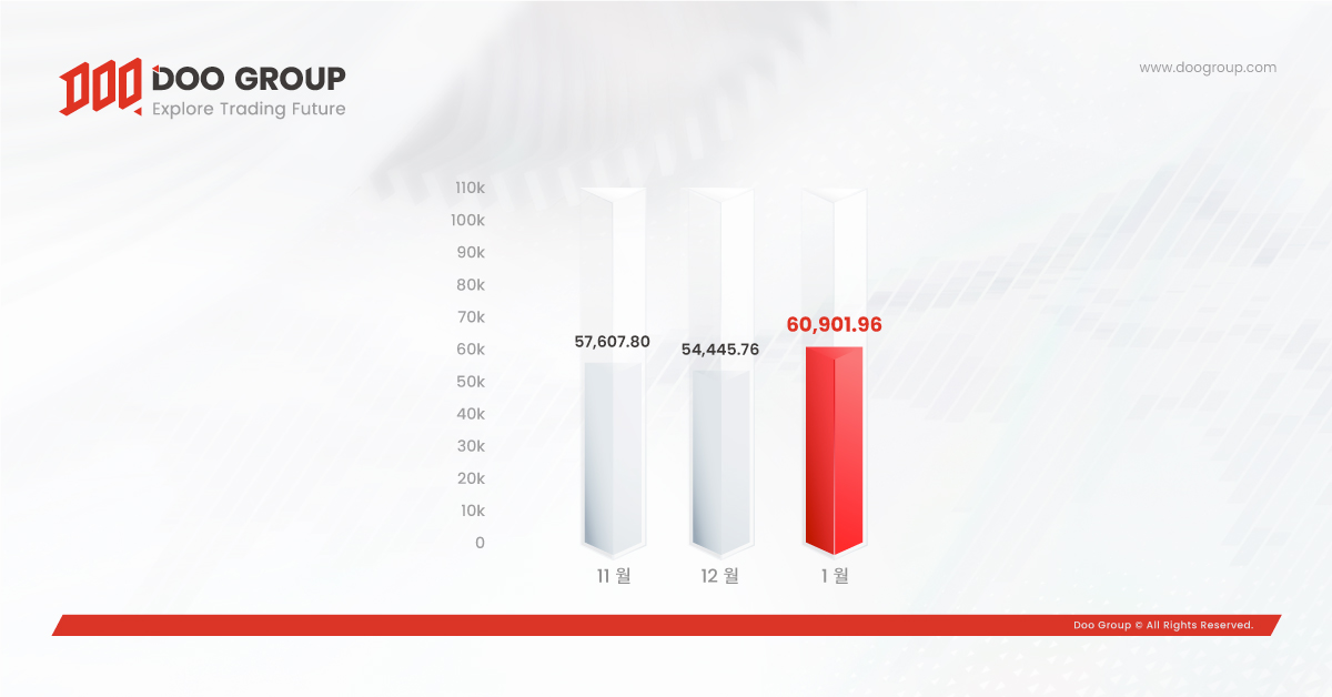 - 1월 총 거래량은 609.0억 달러입니다.