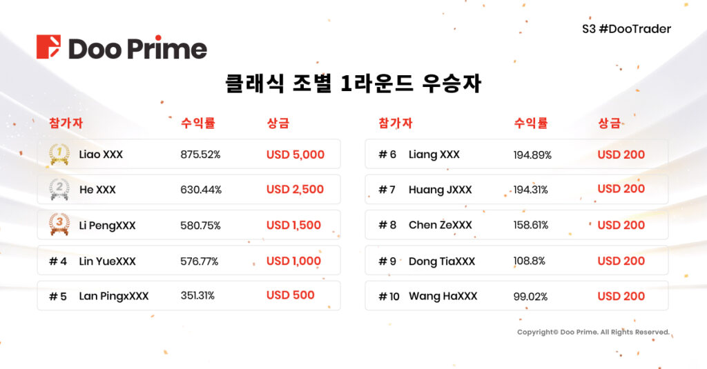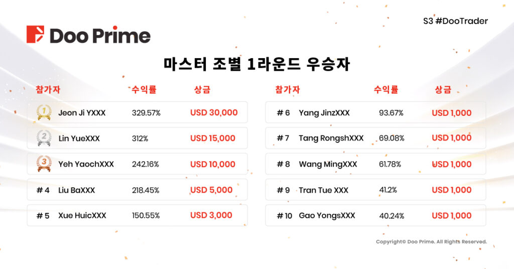 제3회 #DooTrader 글로벌 자선 트레이딩 대회, 1라운드 우승자 탄생