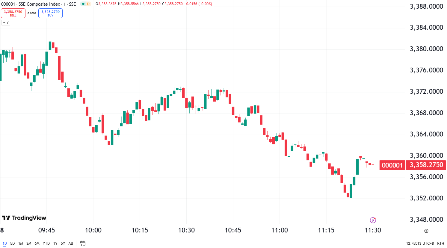 - Shanghai Composite: ▼ 0.88% to 3,358.28