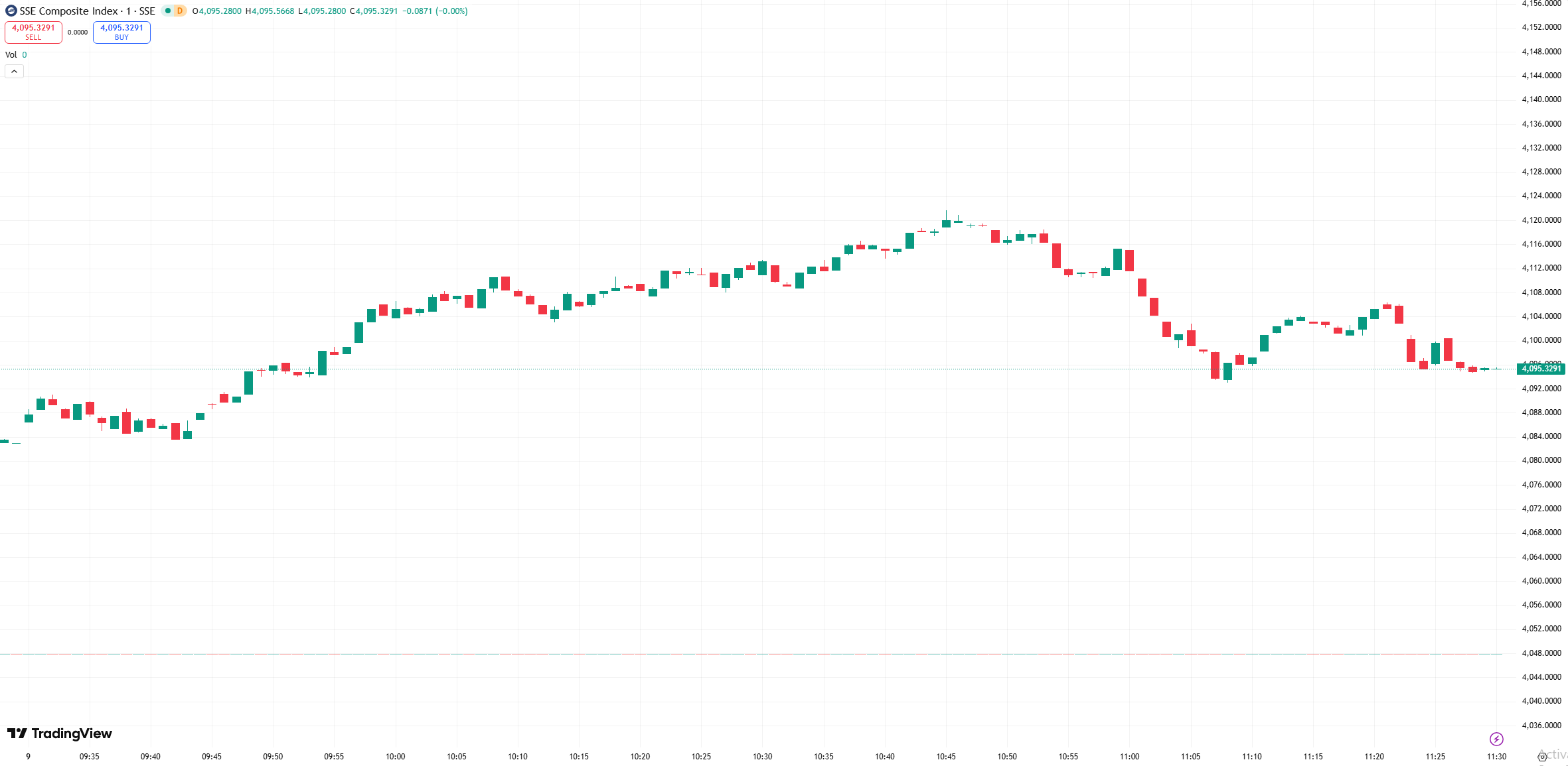 Shanghai Composite: +0.29% at 4,095.54