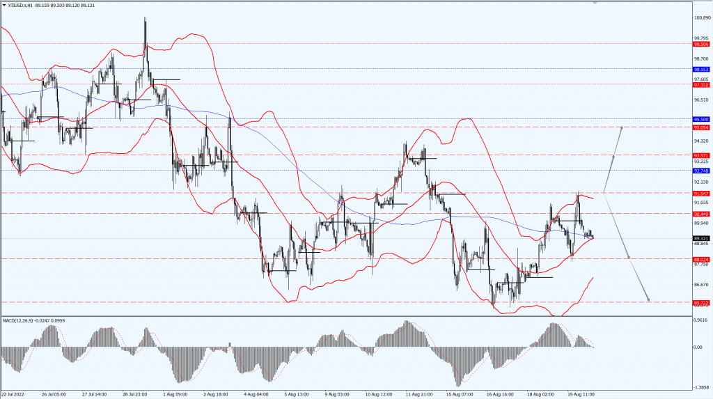 - 如果油价运行于 91.54 一线下方,届时关注 88.02 和 85.72 位置的支撑力度。