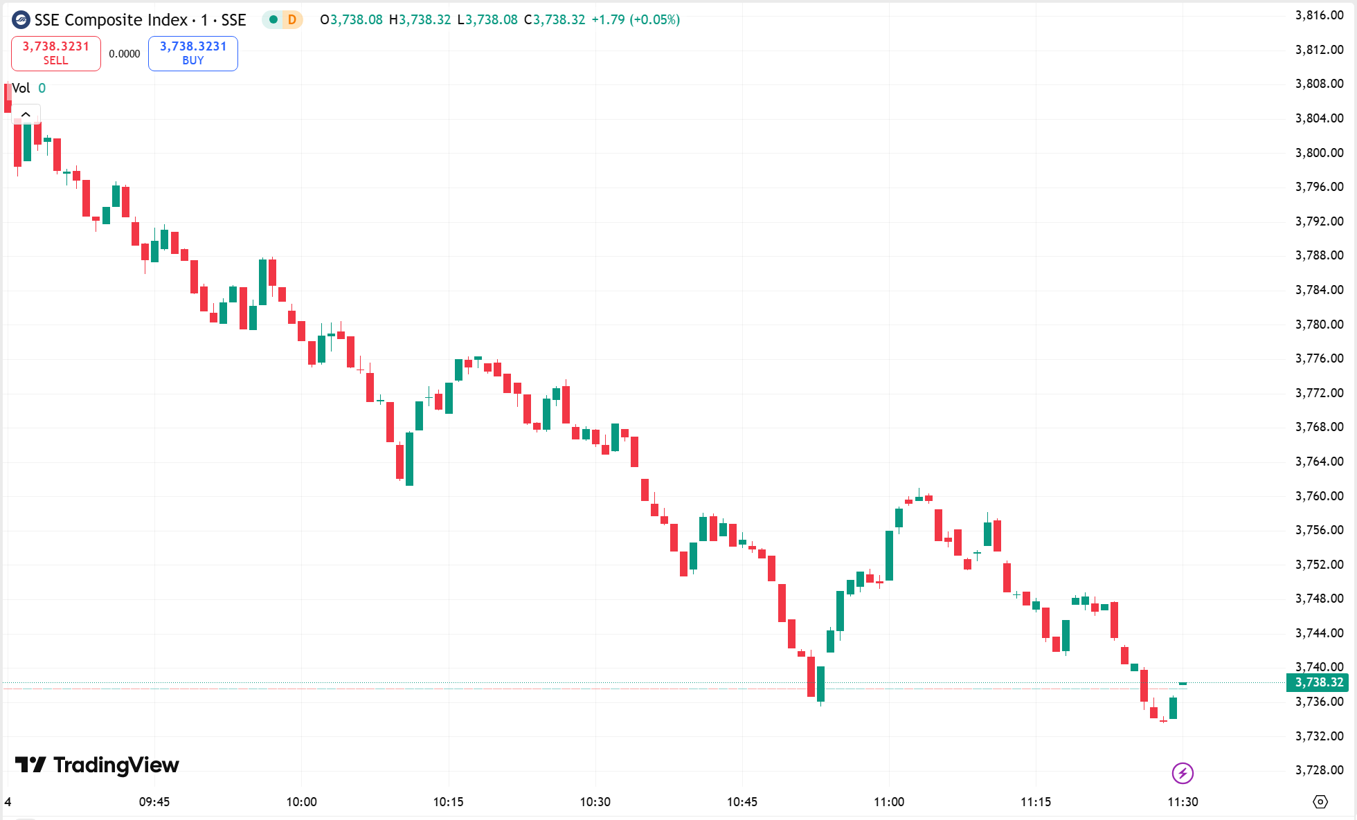 A 股三大指数早盘集体下跌,截至午盘,沪深京三市半日成交额 16187 亿元,较上日放量 1465 亿元。全市场超 2600 只个股下跌。