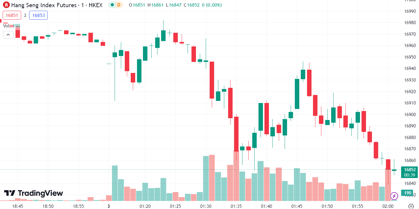 • 恒生指数跌 0.74%,收报 16,806.57 点