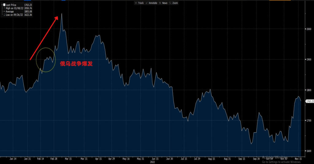 不过随着战争旷日持久,市场逐步消化了对于战争风险所带来的影响,同时美联储也不断激进加息,拉升美元价值。最终造成俄乌战争对于金价走势的影响力逐步消退。