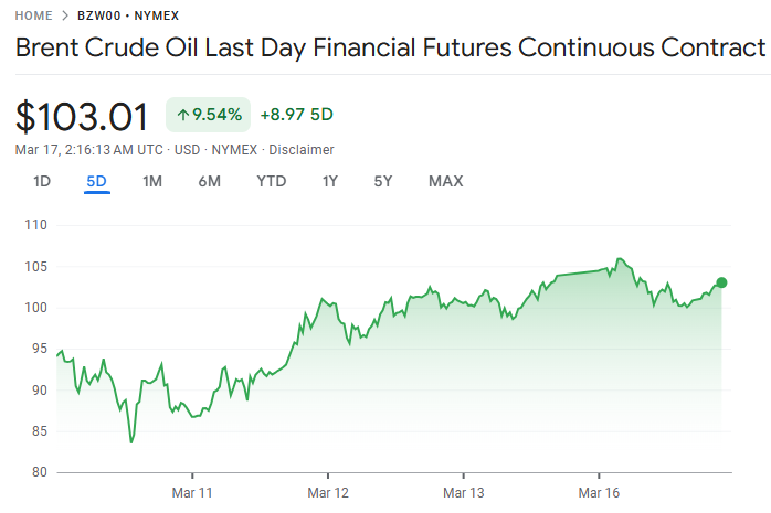 原油价格高位震荡,布伦特连续第三日收于每桶 100 美元上方