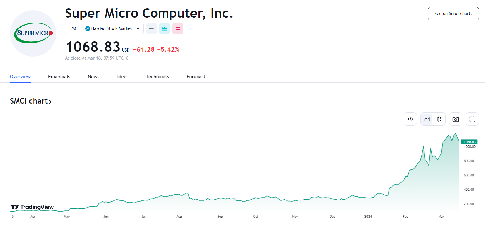 AI 热潮推动英伟达股价飙升,使其成为全球市值第三大公司。然而,比英伟达涨幅更大的其实是俗称“AI 妖股”的超微电脑。在过去的 12 个月里,超微电脑股价暴增超过 12 倍,并将在 18 日正式成为标普 500 指数的一员。届时,它将成为该指数中一年来表现最佳的公司。