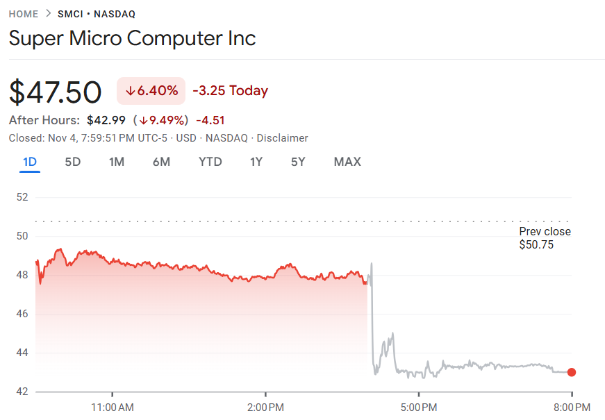 美超微财报与展望双双不及预期,盘后股价大跌 9.5%