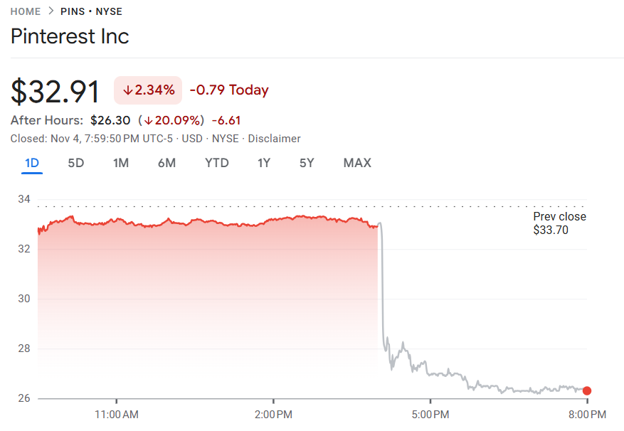 Pinterest 第四季度营收预测逊色,广告增长乏力,股价盘后暴跌逾 20%