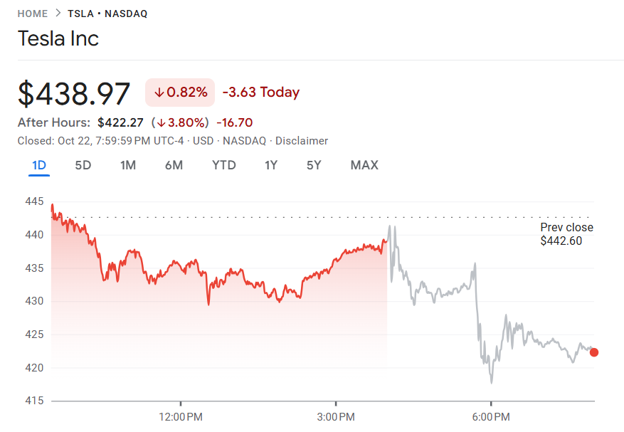 特斯拉第三季度获利不及预期,盘后股价下跌逾 3%