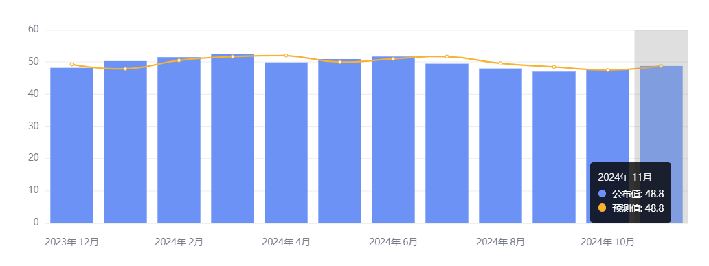 - 制造业 PMI 初值 48.8,为 7 月以来的最高,符合预期,前值 48.5