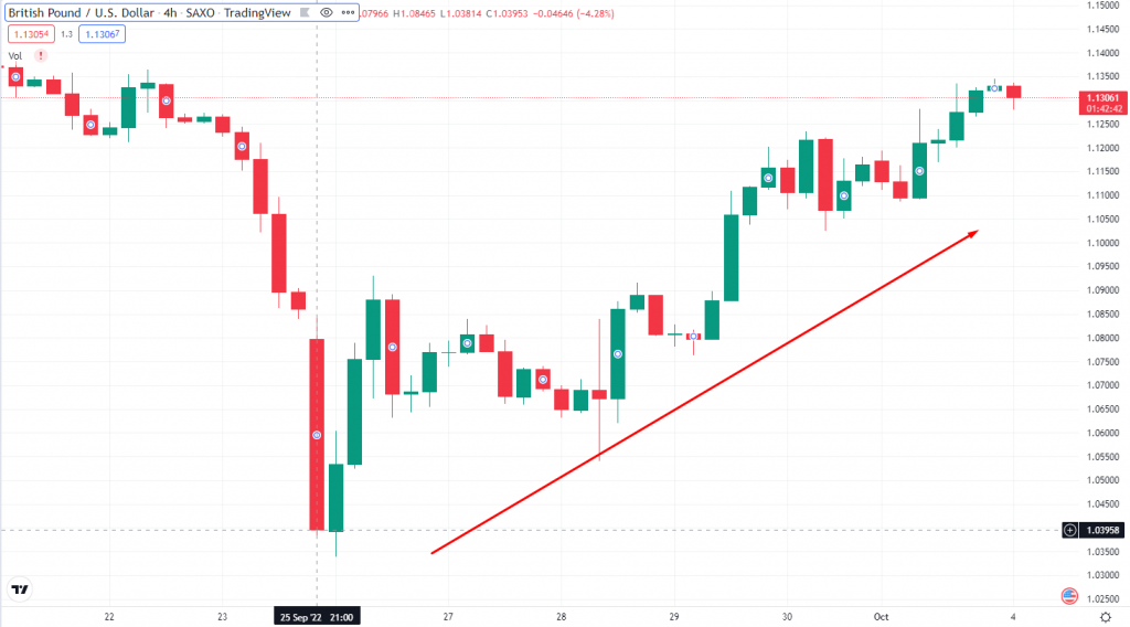 英镑兑美元汇率在上周一度跌至 1.0327,创下 1971 年以来的最低水平。消息发布后,英镑兑美元汇率应声上涨,已回升至该计划公布前的水平。在当天的亚洲早盘交易中,英镑对美元汇率一度回升至 1.1250。
