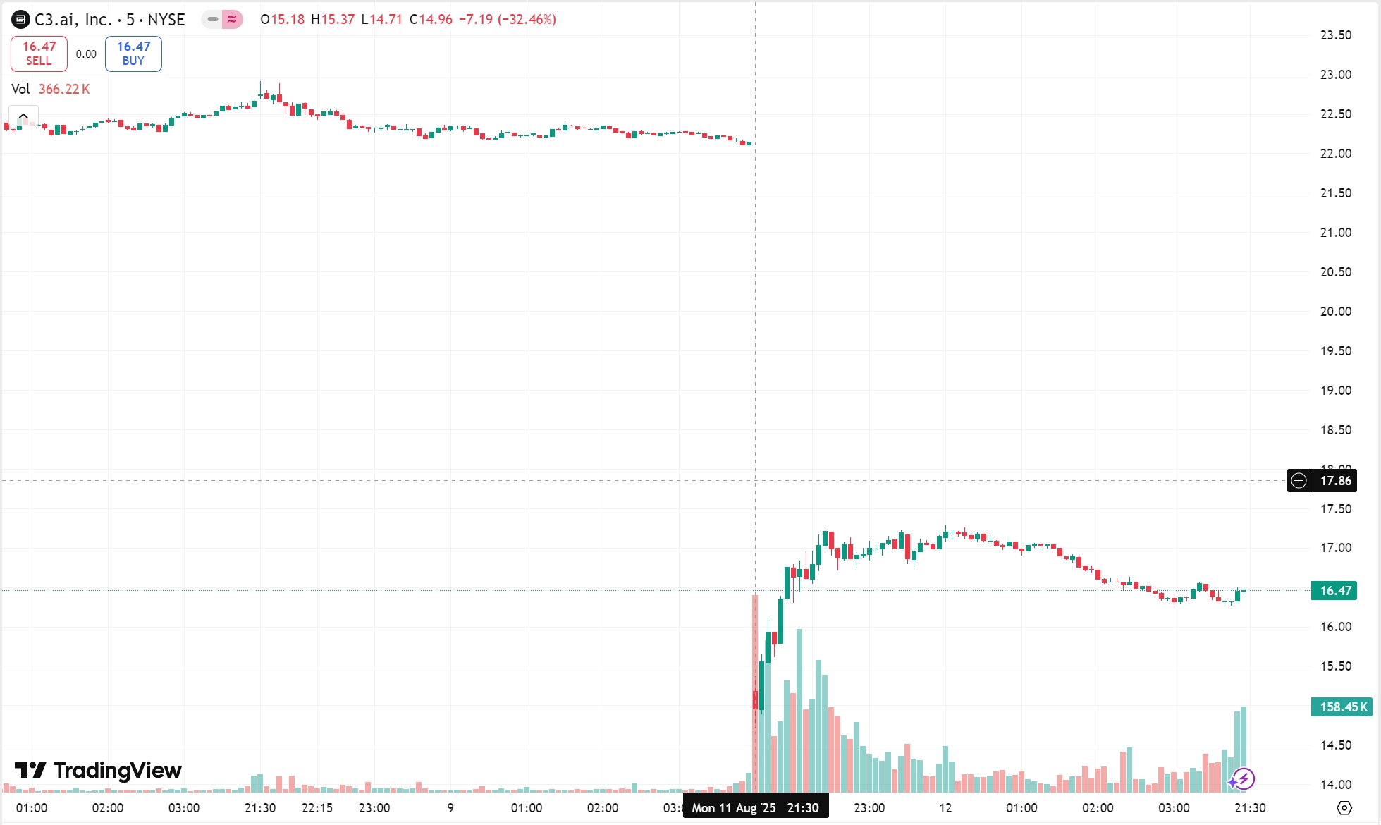 美国企业人工智能应用软件公司 C3.AI 股价大跌超 25%,因初步业绩远逊预期。公司预计,截至 7 月 31 日的季度总收入为 7020 万至 7040 万美元,远低于市场预期的 1 亿美元,且低于去年同期的 8720 万美元;GAAP 营运亏损料达 1.247 亿至 1.249 亿美元,显著高于去年同期 7259 万美元的亏损数字。