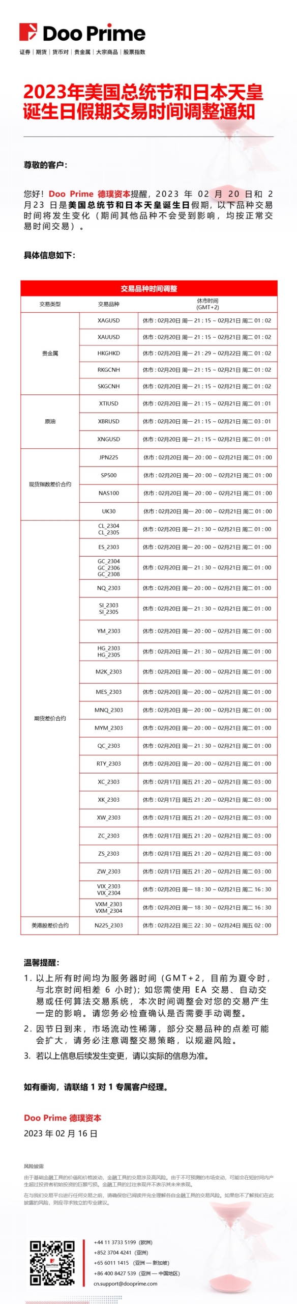 2023年美国总统节和日本天皇诞生日假期交易时间调整通知