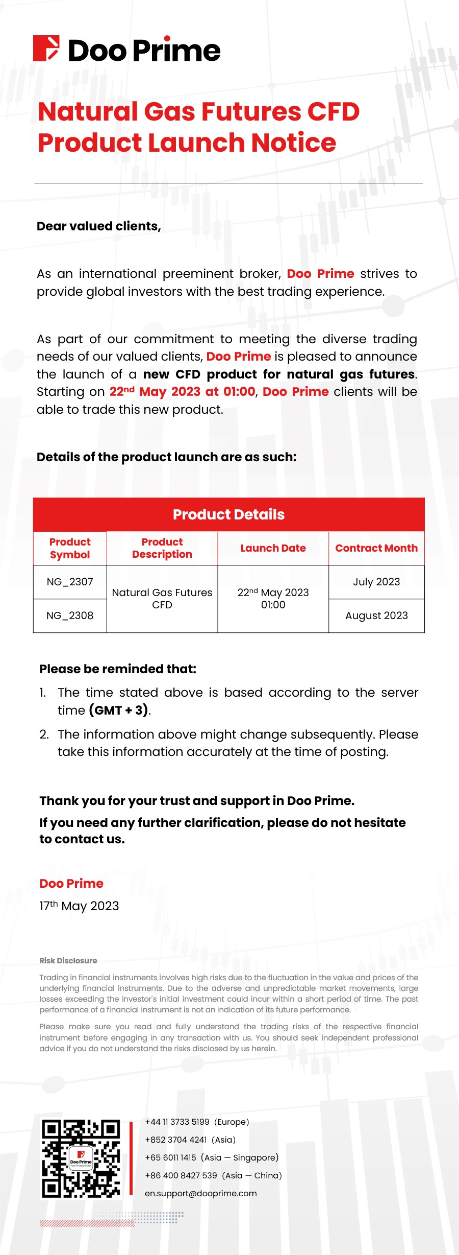 Doo Prime Natural Gas Futures CFD Product Launch Notice