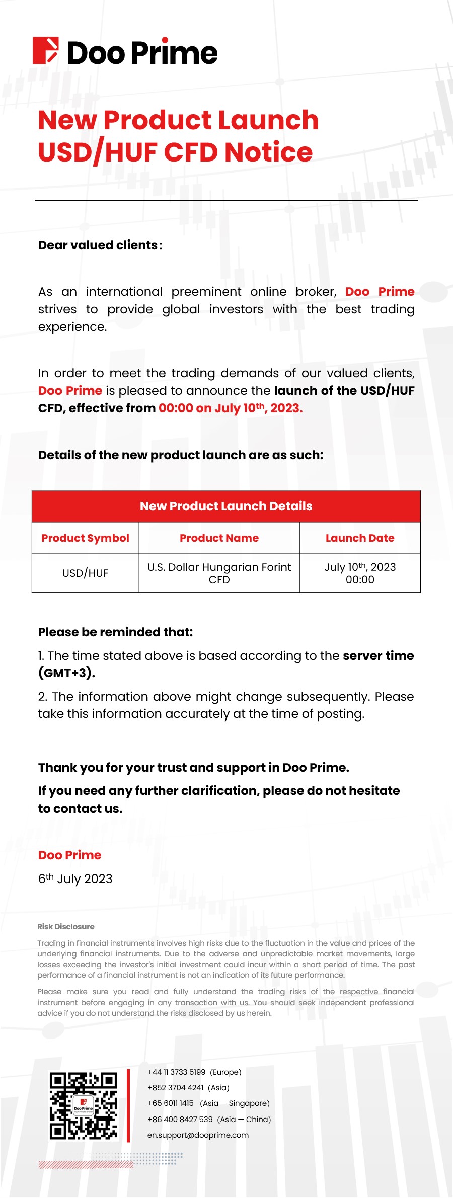 Doo Prime New Product Launch USD/HUF CFD Notice