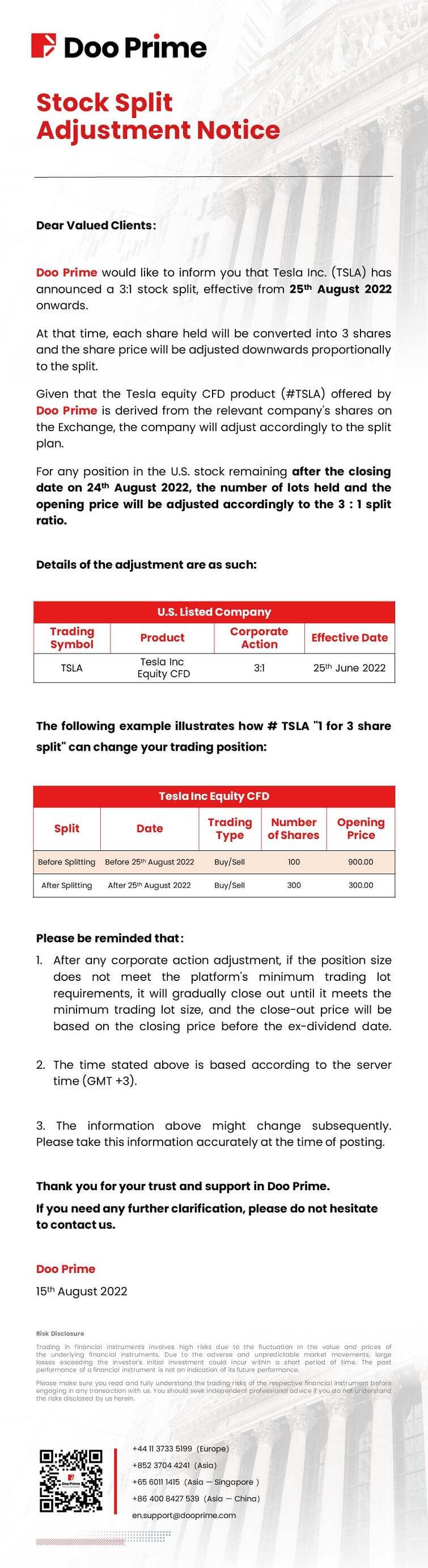 Doo Prime Stock Split Adjustment Notice