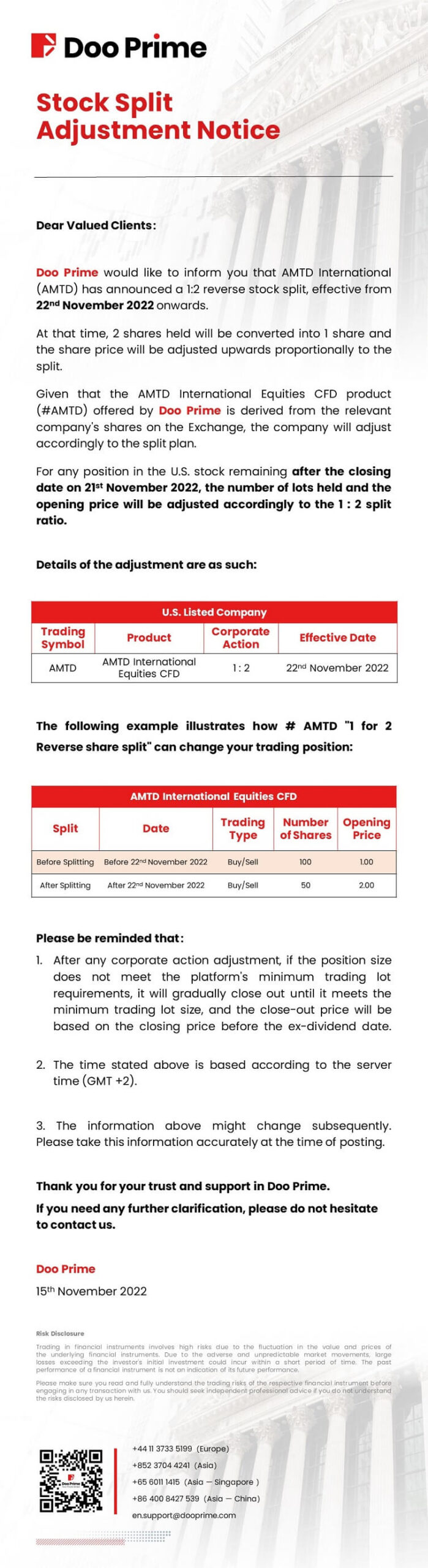 Doo Prime Stock Split Adjustment Notice