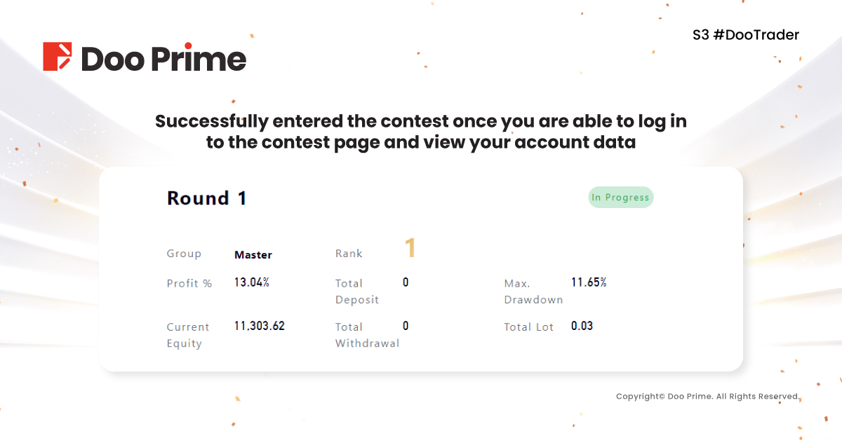 You have successfully entered the contest once you are able to log in to the contest page and view your account data. Participants are then free to trade and compete for the top prize!