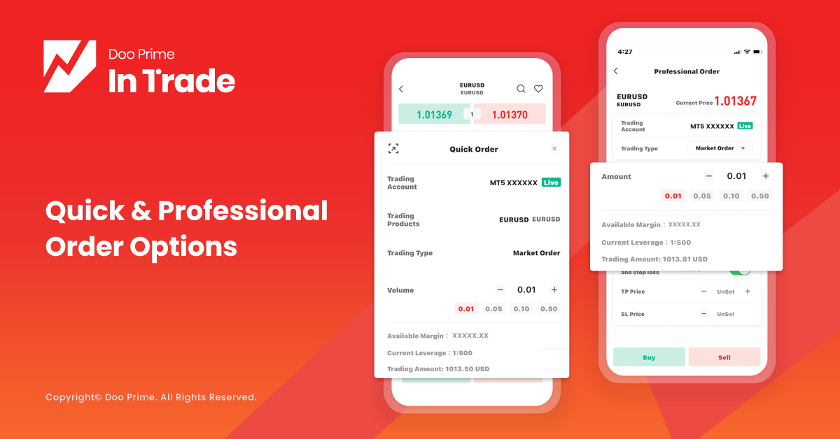Trade execution speed is known to be the most crucial factor for traders. The Doo Prime InTrade app incorporates quick order and professional order options for traders.