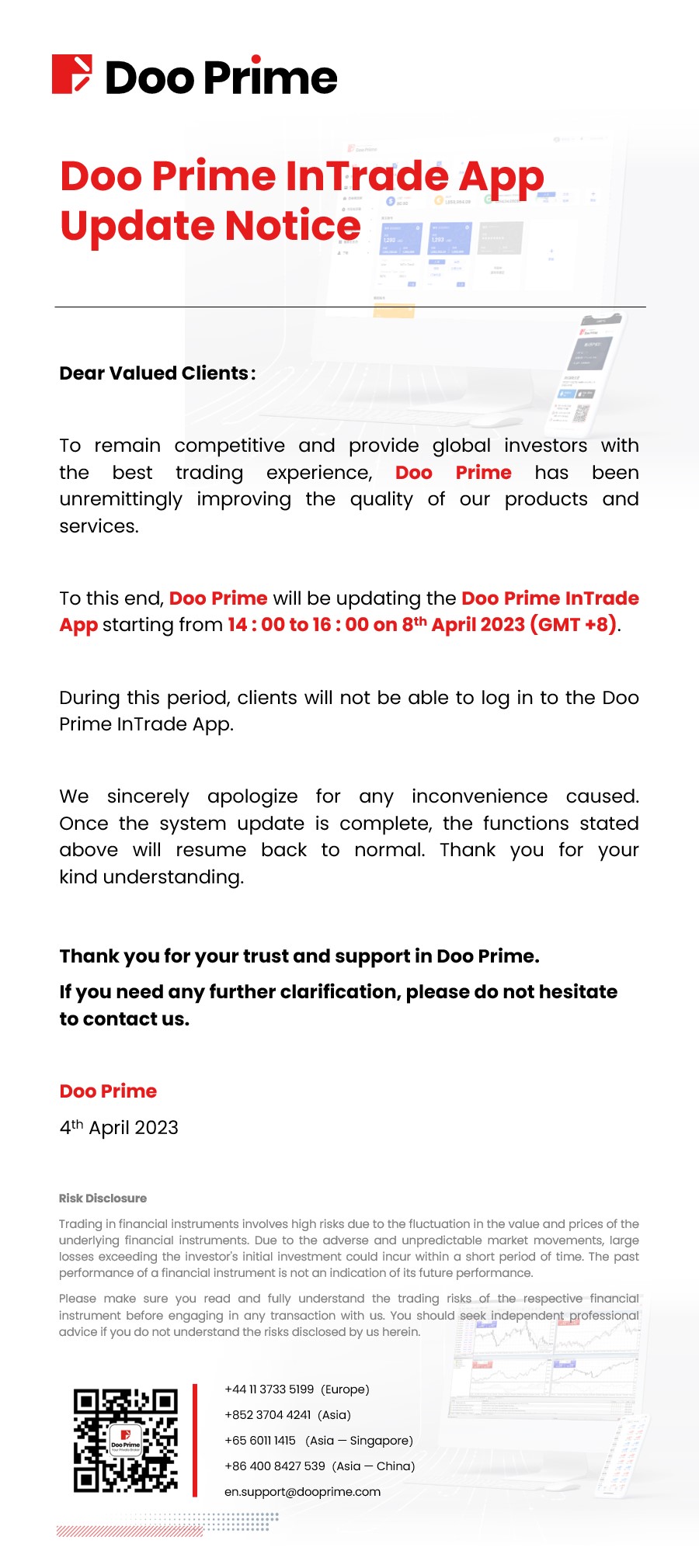 D Prime will upgrade MT4 Live 6 servers on April 18, 2026 to enhance performance. View the upgrade schedule and potential service impact.