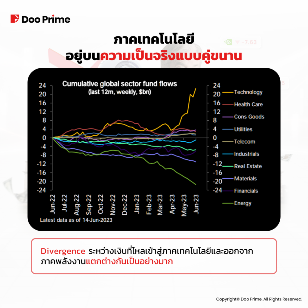 แม้อัตราดอกเบี้ยจะปรับขึ้นเร็วที่สุดในประวัติการณ์ และเงินเฟ้อทั่วโลกสูงสุดในรอบ 40 ปี แต่ตลาดก็ยังไม่เปลี่ยนแปลงความคิดว่าสถานการณ์ยังเป็นไปได้ด ระบบธนาคารสหรัฐฯ ยังอยู่ความเสี่ยง เพิ่มความกังวลต่อการเกิดการชะลอตัวของเศรษฐกิจสหรัฐฯ อย่างไรก็ตาม นักลงทุนยังคลั่งไคล้หุ้น AI และยังประเมินความเสี่ยงที่เกี่ยวข้องกับหุ้นนี้ต่ำเกินกว่าความเป็นจริง นักลงทุนบางคนเริ่มสงสัยว่าตลาดขาขึ้นรอบถัดมานั้นเริ่มต้นขึ้นหรือยัง