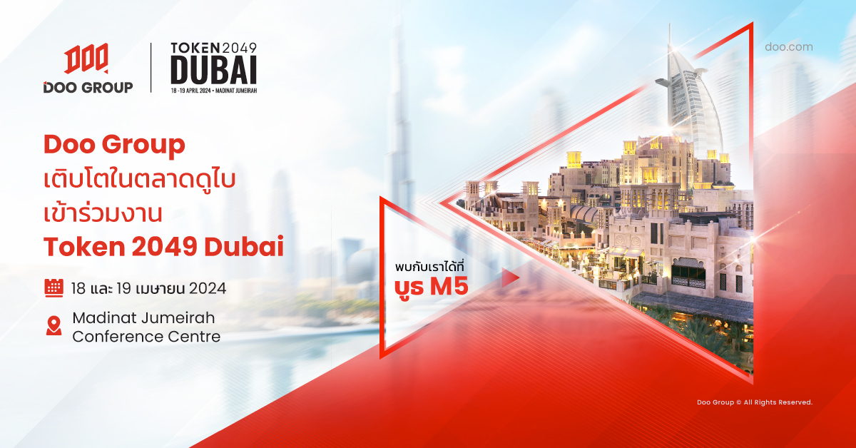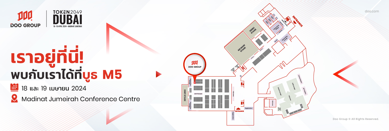 Doo Group รู้สึกตื่นเต้นที่จะมีส่วนร่วมใน งาน Token 2049 Dubai อันโด่งดัง ในฐานะผู้สนับสนุนระดับ Silver  ซึ่งจะจัดขึ้นที่ Madinat Jumeirah Conference Centre ตั้งแต่วันที่ 18 เมษายน 2024 ถึง 19 เมษายน 2024