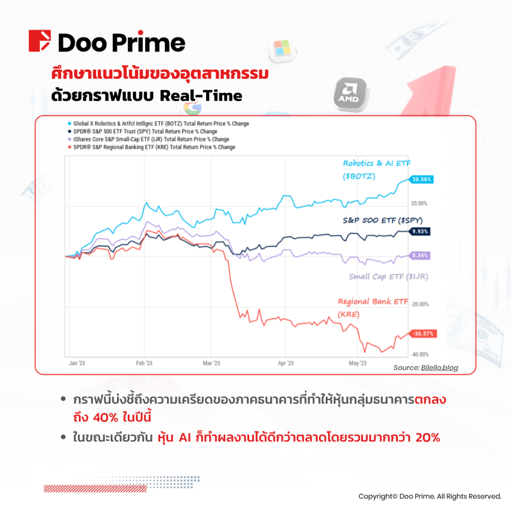 นักลงทุนสามารถติดตามบริษัทที่เป็นผู้นำอุตสาหกรรมเหล่านี้อย่างใกล้ชิด เพื่อให้ตนเองสามารถทำผลตอบแทนได้อย่างเหมาะสมในภาค AI ที่เปลี่ยนแปลงอยู่ตลอดเวลา