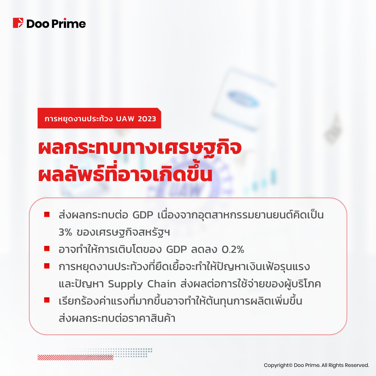 หากยืดเยื้อการประท้วงของ UAW อาจส่งผลให้การเติบโตของ GDP ของสหรัฐฯ ในไตรมาสที่สี่ลดลง 0.2% เศรษฐกิจซึ่งกำลังต่อสู้กับแรงกดดันด้านเงินเฟ้ออยู่แล้ว จะพบว่าการรักษาเสถียรภาพหากเผชิญกับความพ่ายแพ้ดังกล่าวจะเป็นเรื่องที่ท้าทาย