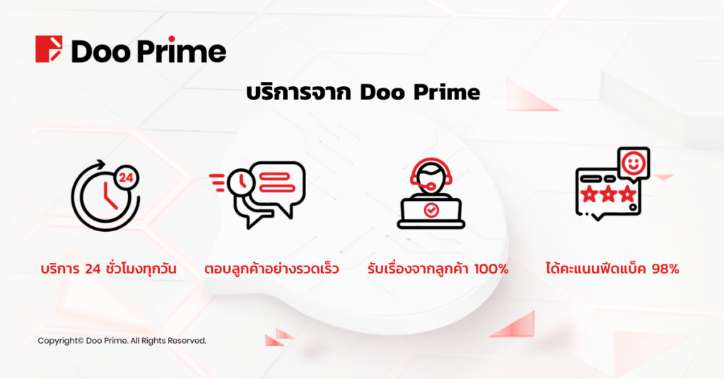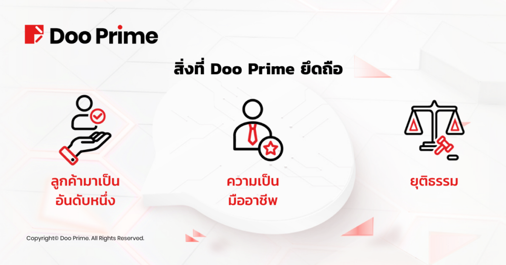 Doo Prime พยายามอย่างต่อเนื่องในการช่วยเหลือแบบเป็นรายบุคคลและปรับปรุงคุณภาพการบริการลูกค้าโดยการแก้ไขปัญหาที่แม่นยำเพื่อให้คุณได้รับประสบการณ์การซื้อขายที่ดีที่สุดเสมอ