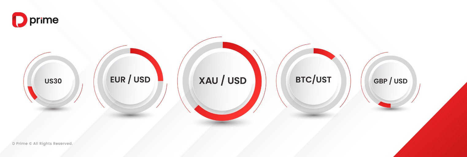 - Sản Phẩm Được Giao Dịch Nhiều Nhất: XAU/USD, EUR/USD, BTC/UST, US30 (Dow Jones), GBP/USD