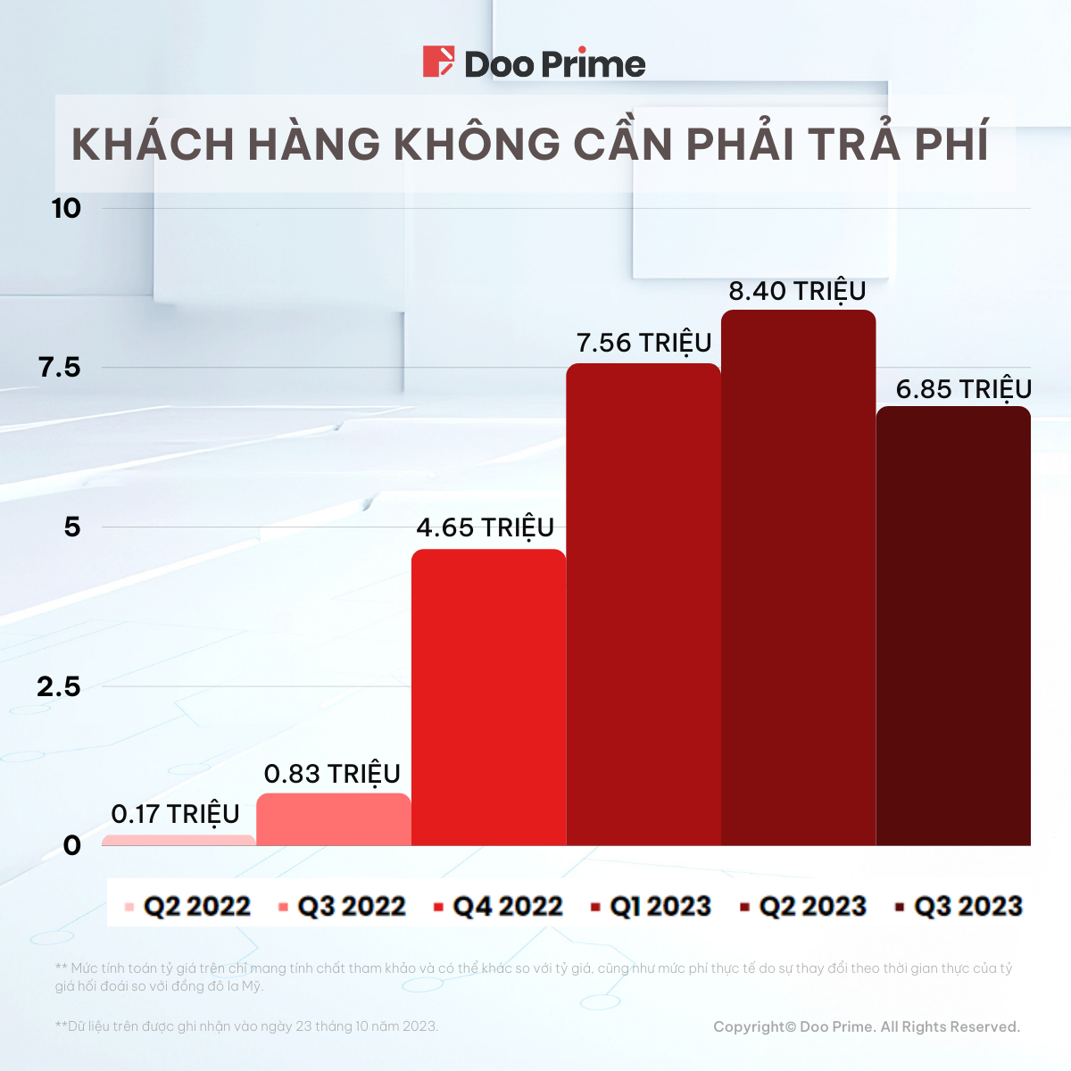 Có thể nhận thấy, mức lãi suất được miễn tăng đáng kể từ quý 1 đến quý 2 năm 2023, nhưng trong giai đoạn từ quý 2 đến quý 3 năm 2023, con số này vẫn được duy trì ở mức ổn định. Như vậy, số lượng người tham gia vào chiến dịch Miễn Phí Swap của Doo Prime luôn nằm trong ngưỡng đầy triển vọng.