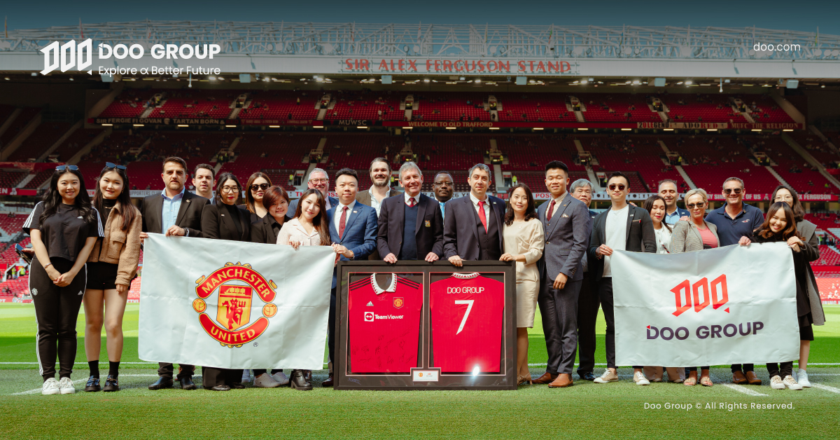 Trên hết, chúng tôi đã bứt phá mọi giới hạn và tiến hành hợp tác với các câu lạc bộ bóng đá nổi tiếng trên phạm vi toàn cầu – CLB Bóng Đá Manchester United và CLB Bóng Đá Adelaide United. Nhờ đó, Doo Group đã thành công trong việc nâng tầm hình ảnh thương hiệu trên trường quốc tế, đồng thời thúc đẩy sự hiện diện của chúng tôi trên toàn cầu.