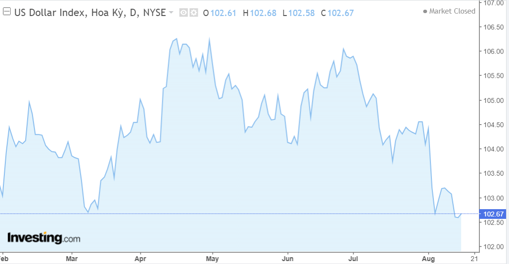 Thước đo đơn vị của Hoa Kỳ so với sáu đối thủ, đóng cửa ở mức 102,6, loanh quanh mức thấp nhất trong 5 tháng gần nhất là 102,15 hồi tuần trước. Chỉ số này đang trên đà chìm trong sắc đỏ tuần thứ tư liên tiếp, lần tăng giá gần đây nhất xảy ra vào tháng 3 đến tháng 4 năm 2023.