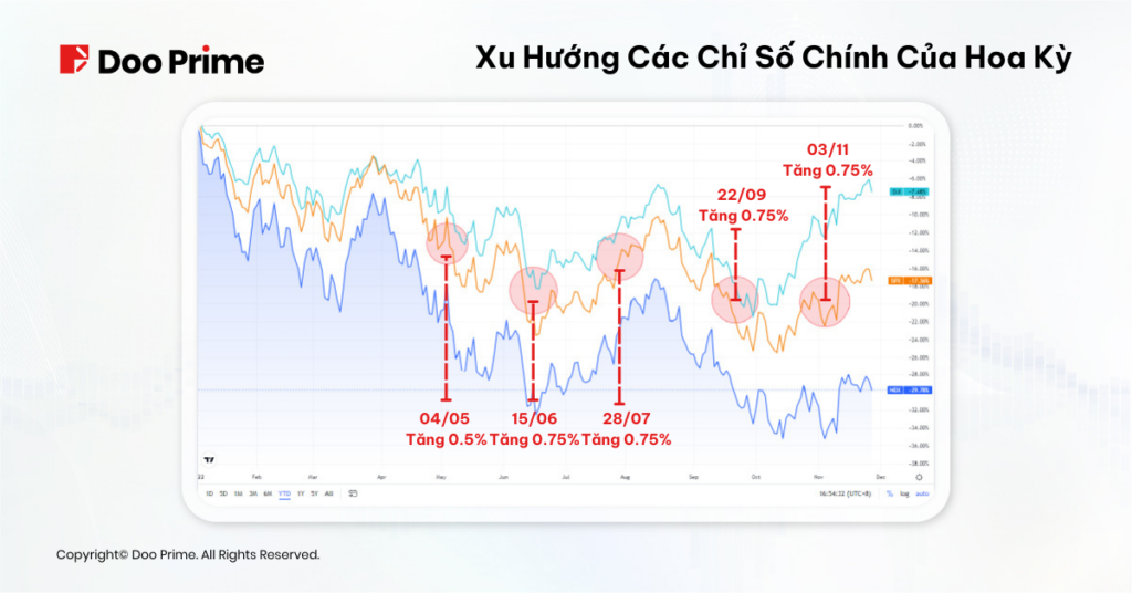 Bất chấp sự suy giảm của thị trường chứng khoán Mỹ, Cục Dự trữ Liên bang vẫn duy trì lập trường thắt chặt chính sách tiền tệ cho đến hiện tại. Nhằm kiềm chế lạm phát, Fed đã rất cứng rắn và mạnh tay trong các quyết định tăng lãi suất.