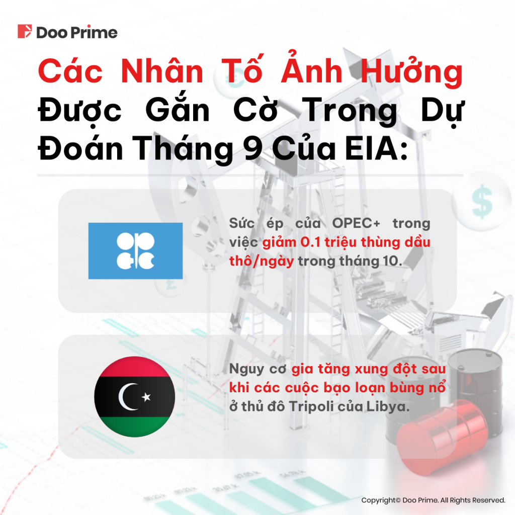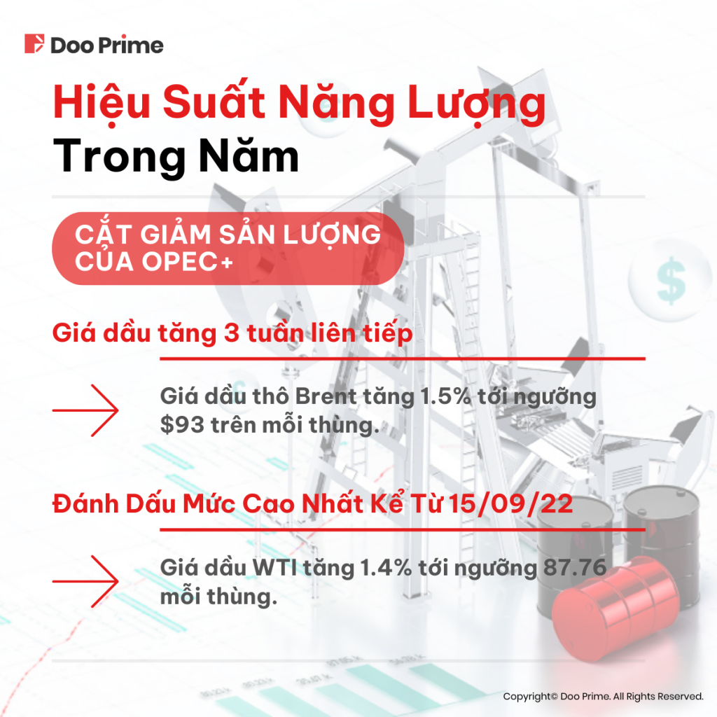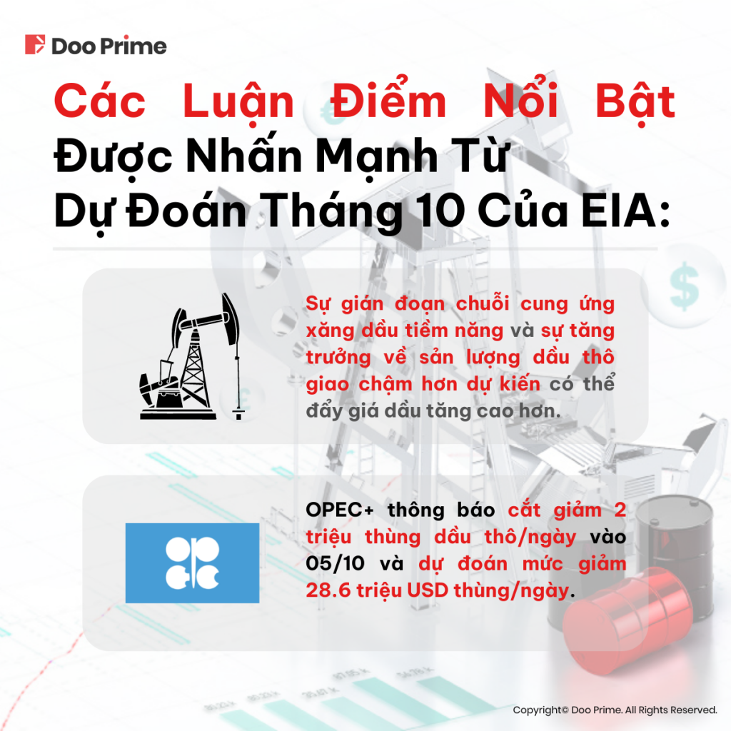 - Sức ép của Tổ chức Các nước Xuất khẩu Dầu mỏ (OPEC+) trong việc giảm sản lượng dầu thô 0.1 triệu thùng/ngày trong tháng 10, cùng với khả năng tiếp tục cắt giảm sản lượng của mặt hàng này trong tương lai.