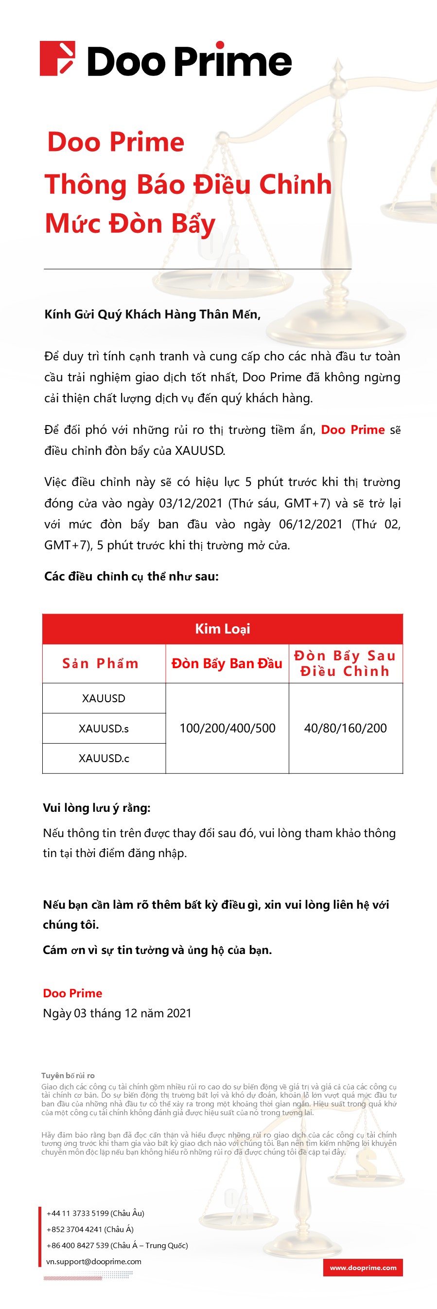 Doo Prime Thông Báo Điều Chỉnh Mức Đòn Bẩy